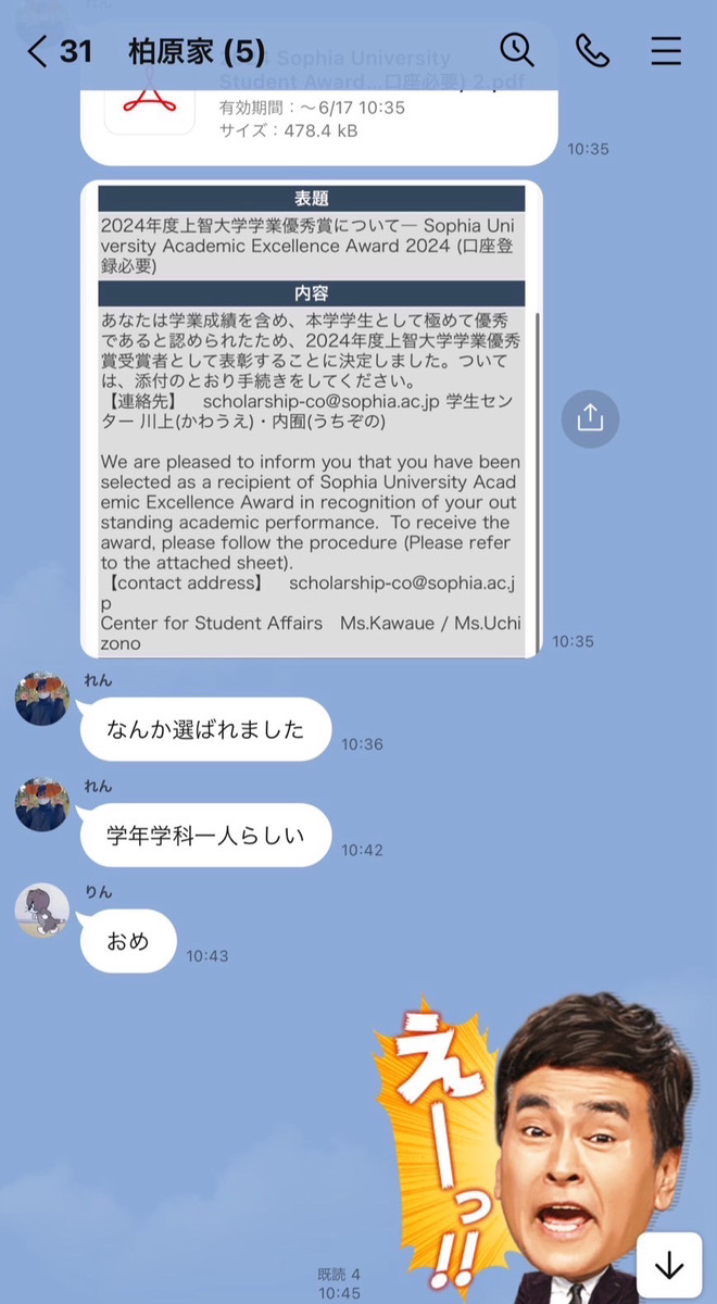 というお知らせが大学からありました。