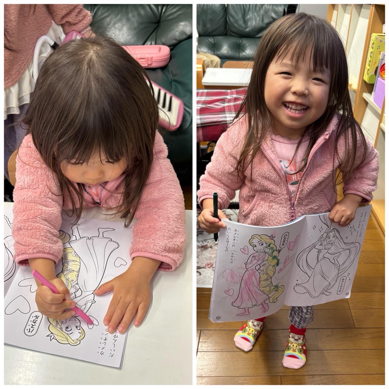 と完成途中の塗り絵を持ってきてくれる、その瞬間がまたたまらないんです。